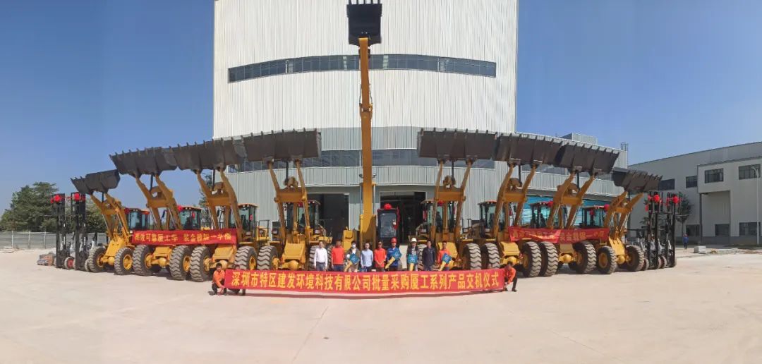 在大空港項目工地現(xiàn)場,一批廈工裝載機、挖掘機、叉車系列產(chǎn)品整齊列隊,在現(xiàn)場嘉賓的祝福下,正式批量交付大空港工程項目方使用。