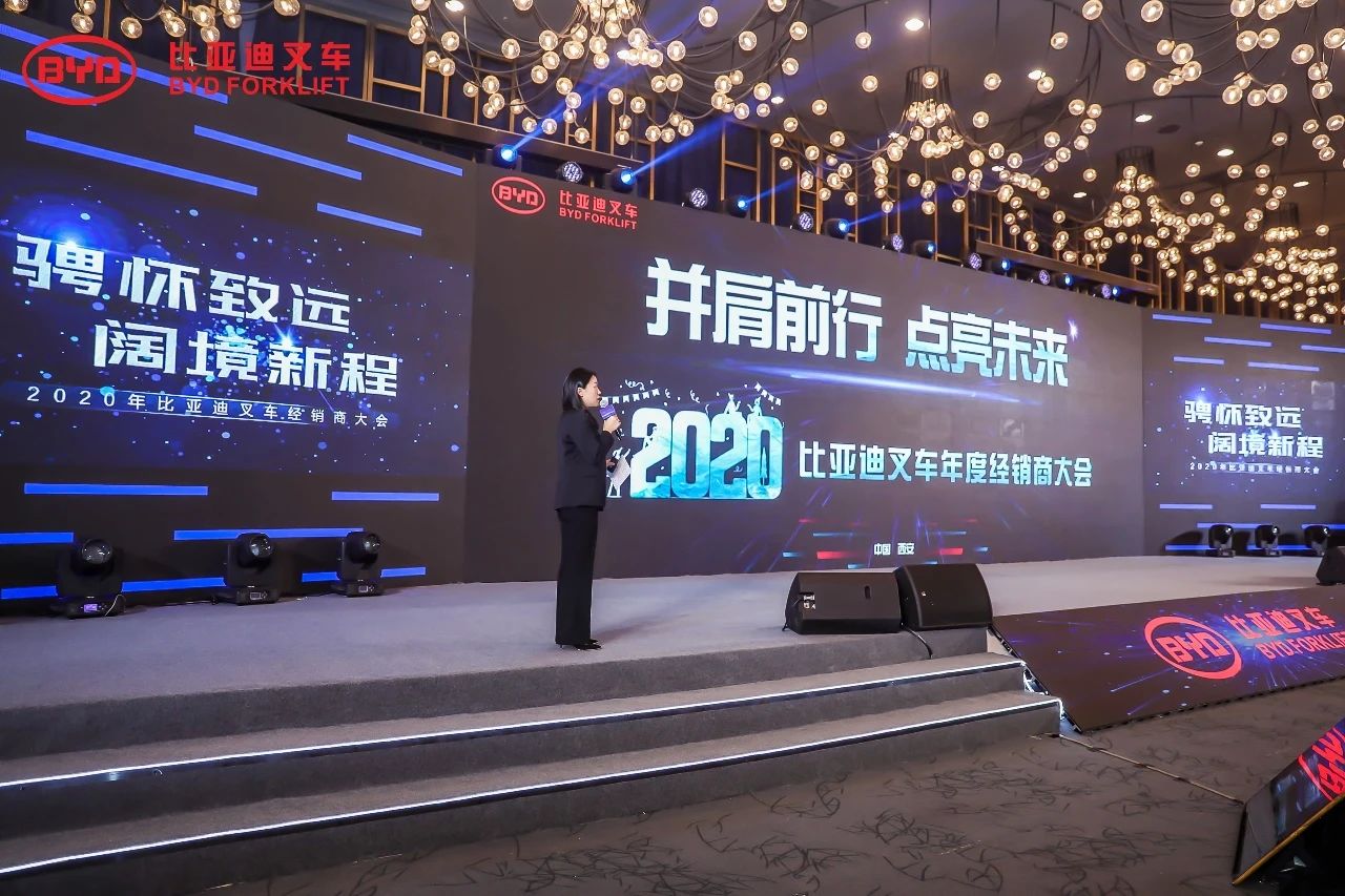 1月6日,以“騁懷致遠,闊境新程”為主題的2020年比亞迪叉車經(jīng)銷商大會在陜西西安隆重召開。比亞迪叉車總經(jīng)理畢國忠先生與事業(yè)部各高層領(lǐng)導(dǎo),以及全國各地的杰出經(jīng)銷商代表、行業(yè)協(xié)會、媒體朋友們歡聚一堂,共同分享喜悅、見證榮耀,展望新能源叉車的未來發(fā)展宏圖。